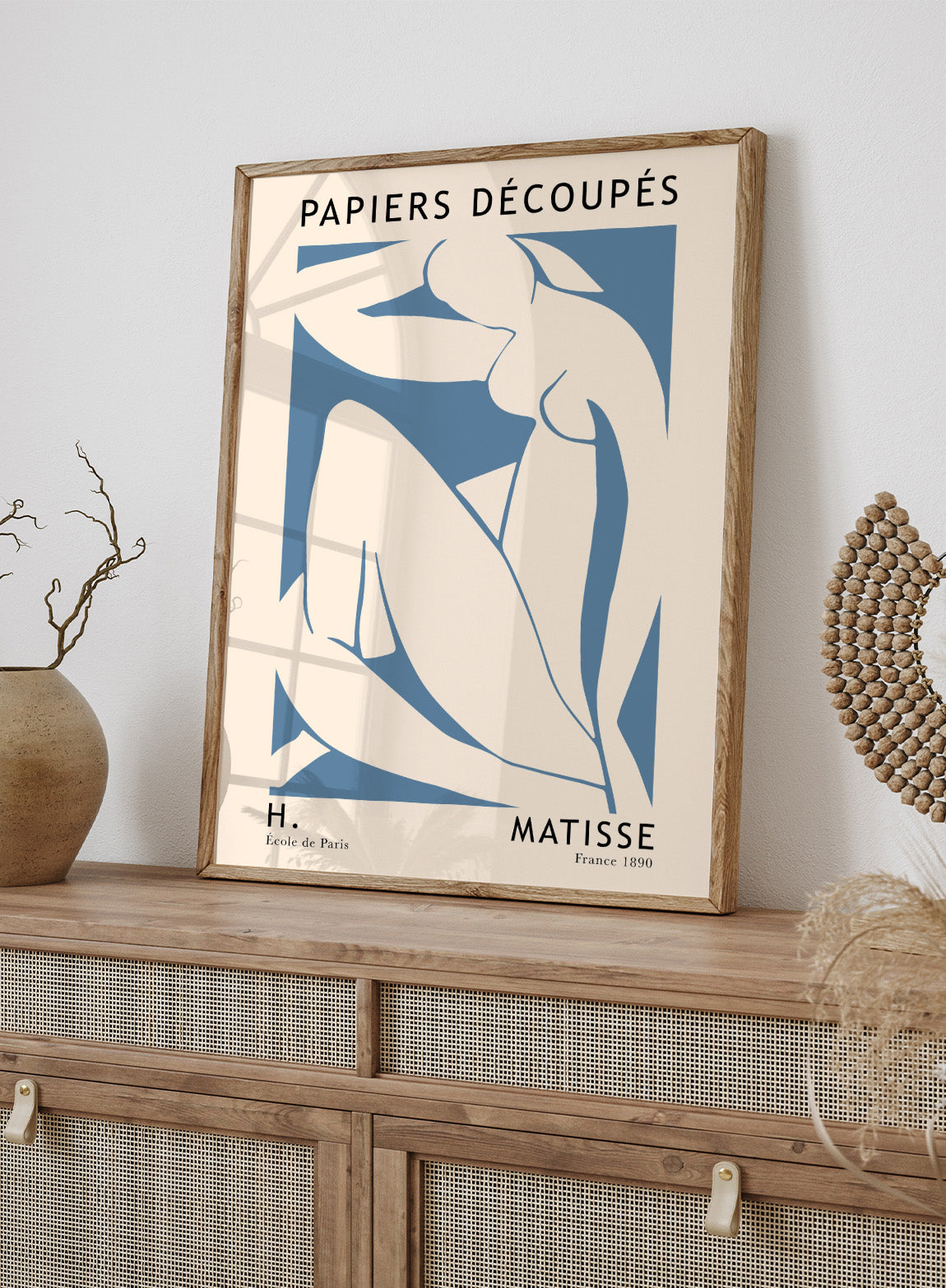 Colorful vintage reproduction artwork inspired by French artist Henri Matisse:  The Blue Nudes II 1952. Wall art is an affordable and easy way to refresh your space instantly! These are high-quality art prints made on museum-grade fine art paper with a premium matte finish that yields long-lasting brilliance to brighten up any room.