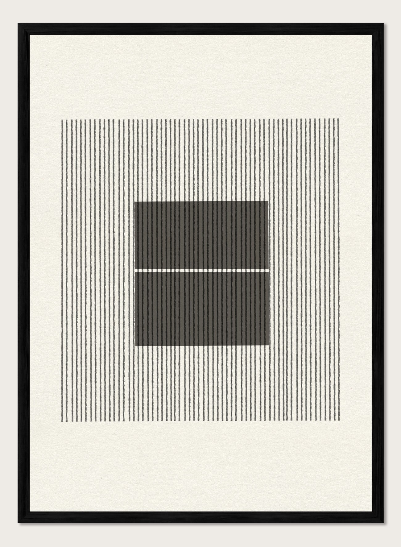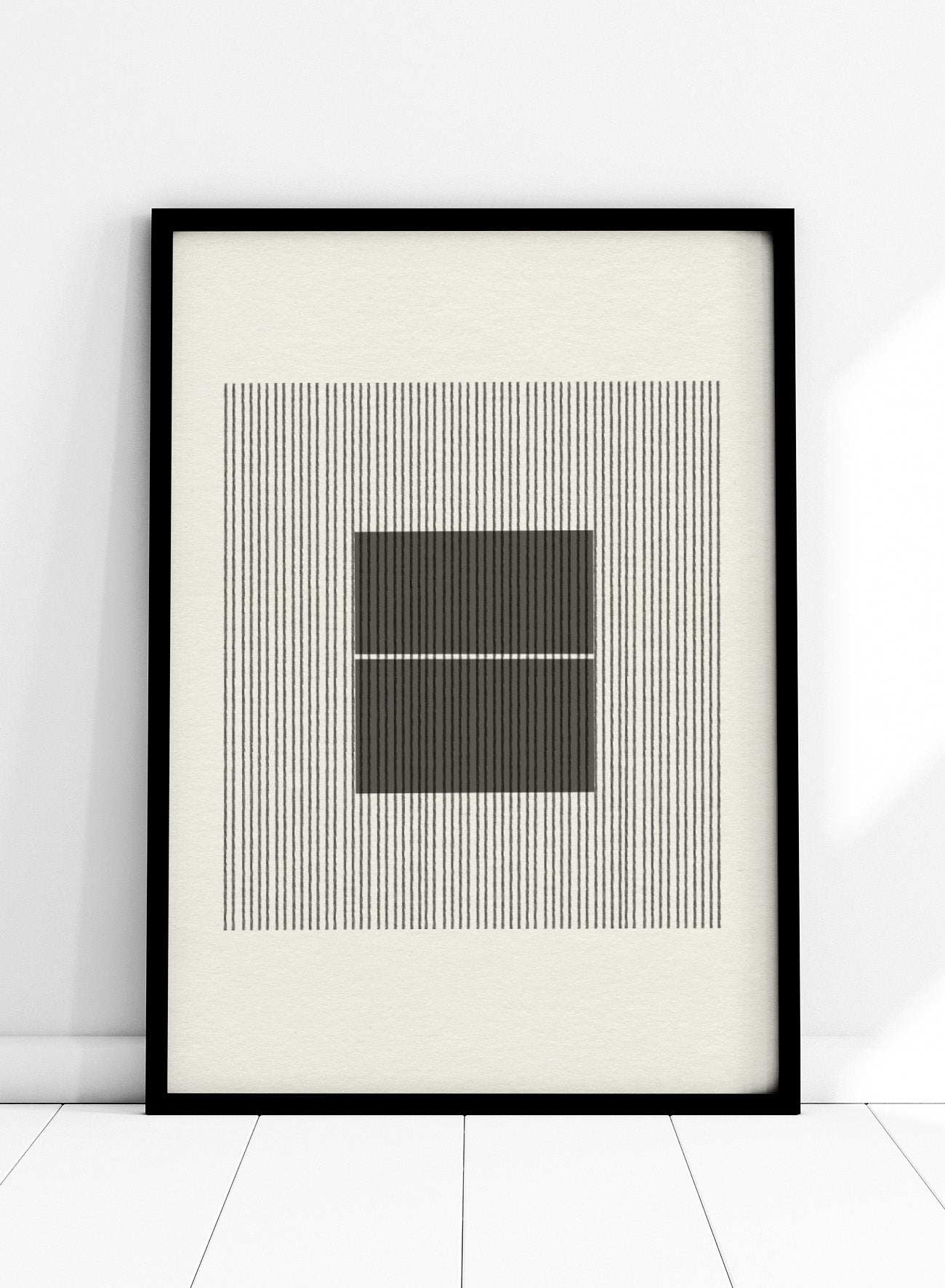Black and white geometric design with lines and squares on a plain background. Line Harmony by The MIUUS Studio is a fine art print and wall poster featuring abstract linework, geometric balance, and minimalist black and white design.