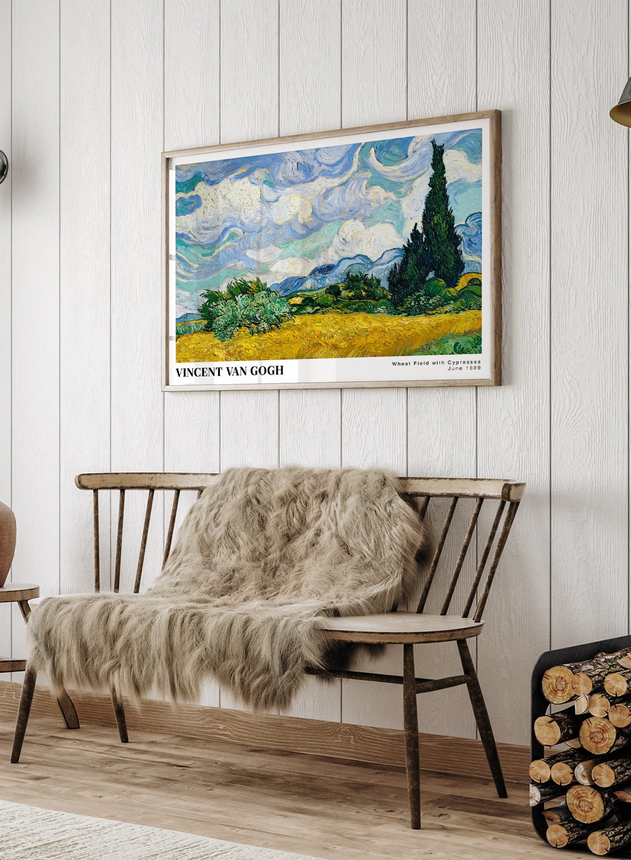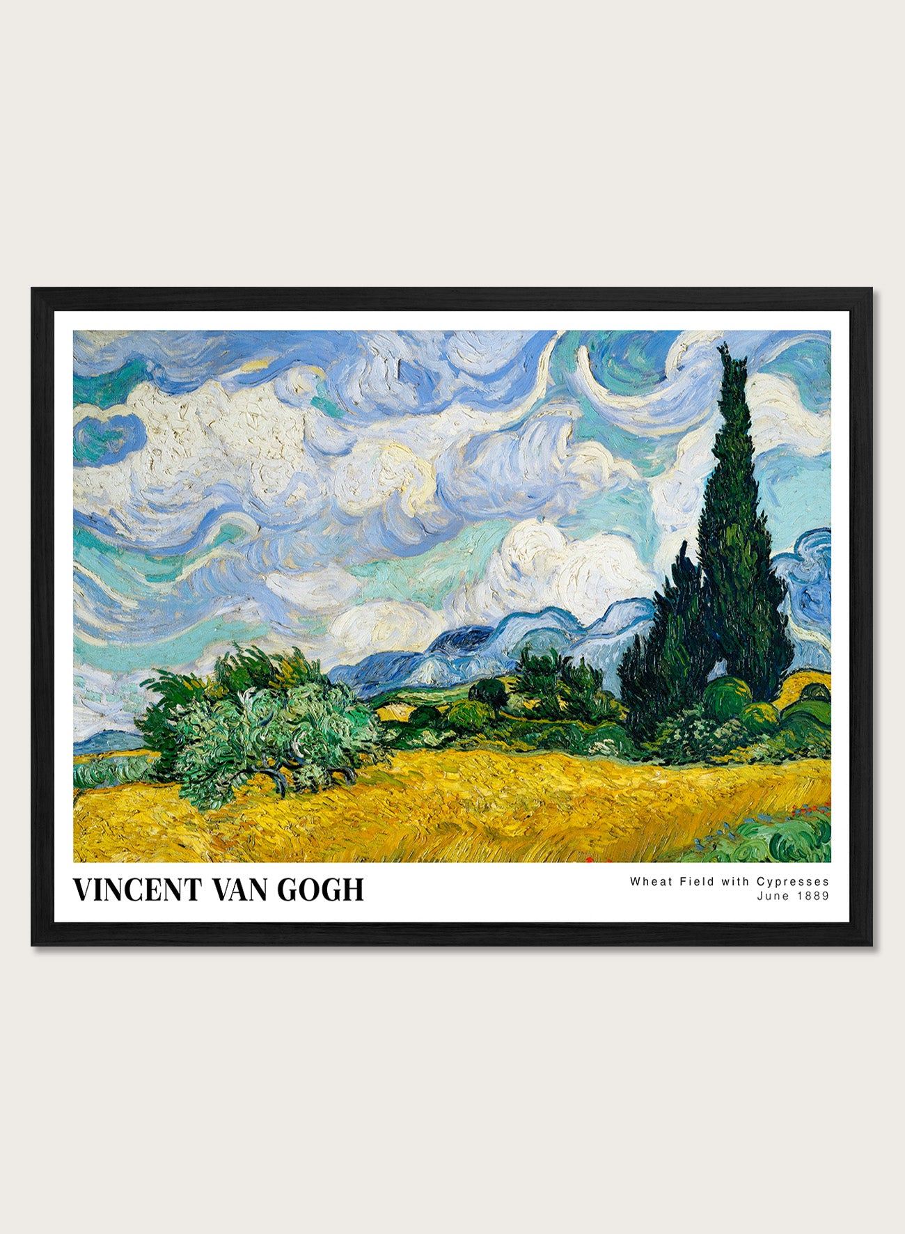 Vintage reproduction artwork by Dutch artist Vincent Van Gogh: Wheat Field with Cypresses 1889. Wall art is an affordable and easy way to refresh your space instantly! These are high-quality art prints made on museum-grade fine art paper with a premium matte finish that yields long-lasting brilliance to brighten up any room.