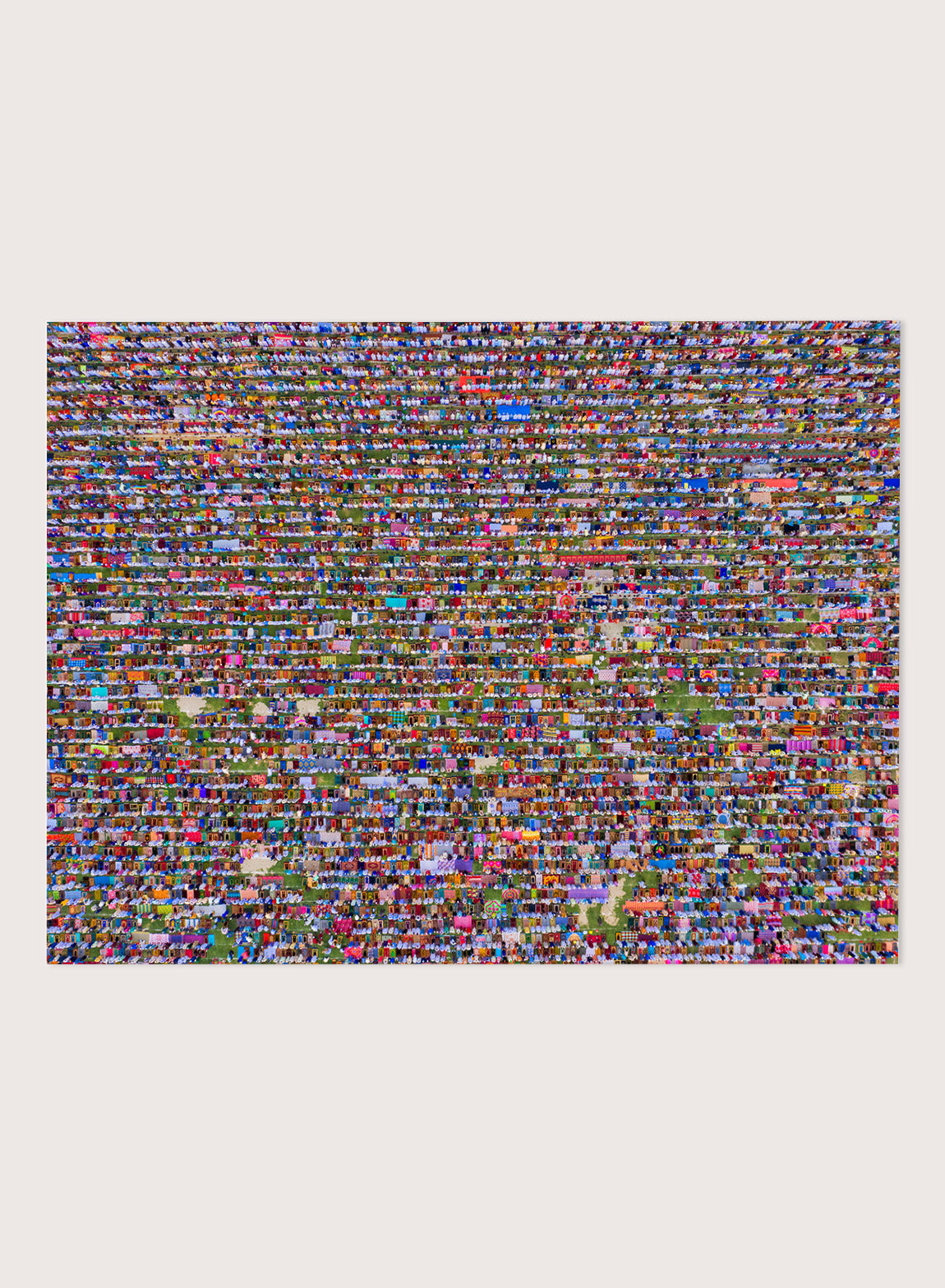 Biggest Eid Prayer by Azim Khan Ronnie shows an aerial view of one of the largest Eid-ul-Fitr congregations in South Asia, held at Gor-e-Shahid Boro Math in Dinajpur, Bangladesh. Thousands of worshippers gather in tightly organized rows, forming an expansive field of color and repetition that stretches across the frame. Captured through aerial photography, the scale is immediate, with over 600,000 people coming together in a single moment of prayer. The structure of the rows creates a powerful visual order, while the sheer number of individuals reflects the collective significance of the celebration.
