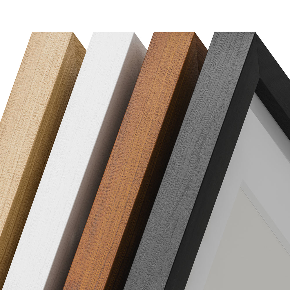 Our frames are crafted from real solid wood, responsibly-sourced from North America and Europe, with a refined, gallery-quality finish. Every framed order includes complimentary professional framing service, so it arrives perfectly ready-to-hang.