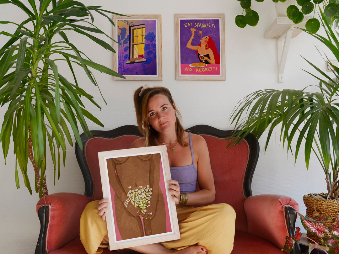 Raissa Oltmanns is a German illustrator and graphic designer based in Hamburg, known for her vibrant colors, bold visual statements, and intimate modern storytelling. Influenced by printmaking and her background in photography, her work has a sharp eye for faces, mood, and detail, often placing women at the center with confidence and presence. Raissa creates art that challenges taboos with honesty and style, turning everyday imagery into striking contemporary prints that feel playful, personal, and unapologetically direct.