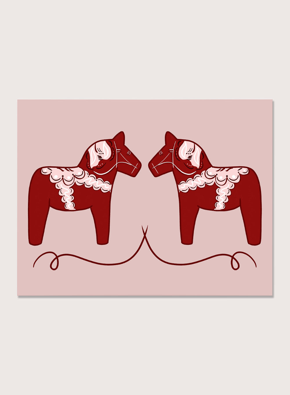Dala horses are a well known symbol in Scandinavian folk art and are traditionally associated with strength, courage, good luck, and the idea of home and family. In this piece, the two horses together feel steady and protective, like something familiar, reassuring, and rooted.