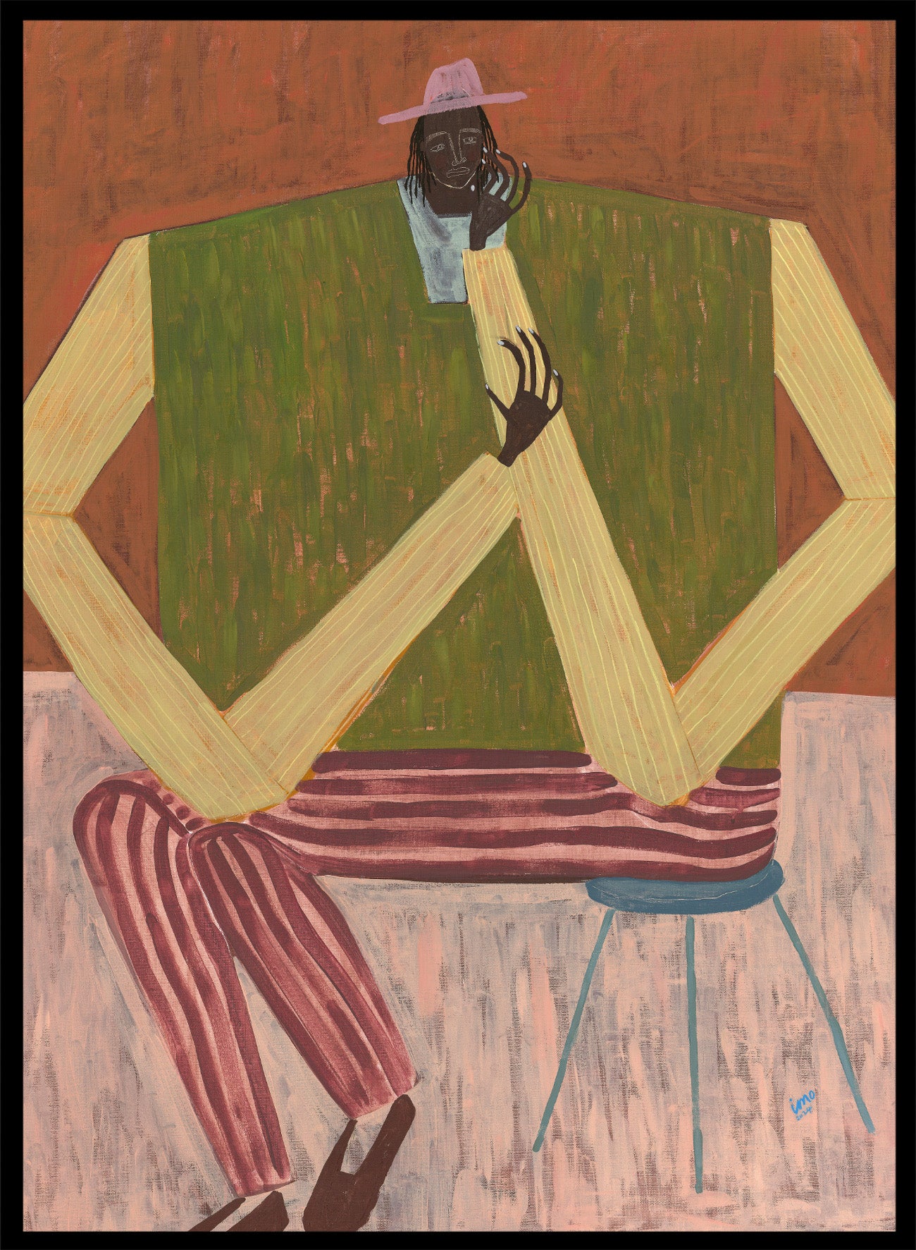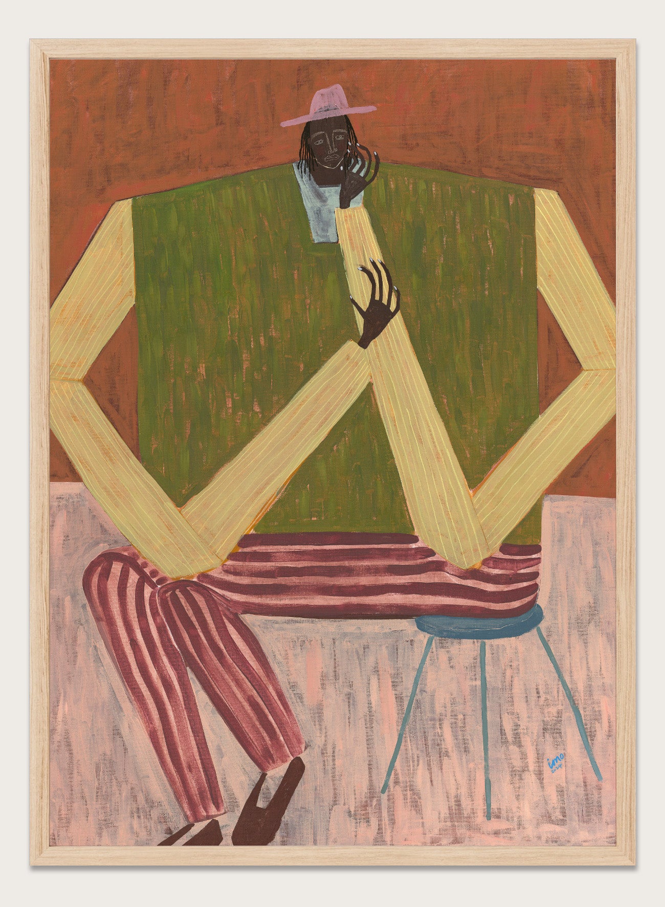 This is officially licensed artwork by Ibi Meier-Oruitemeka. Working under Studio IMO, she is based in Hastings, UK, and quickly became a sold-out artist after beginning her painting practice in 2024. Her work draws from her British Nigerian background, using simplified forms and bold compositions to explore identity, presence, and everyday moments of introspection and connection.