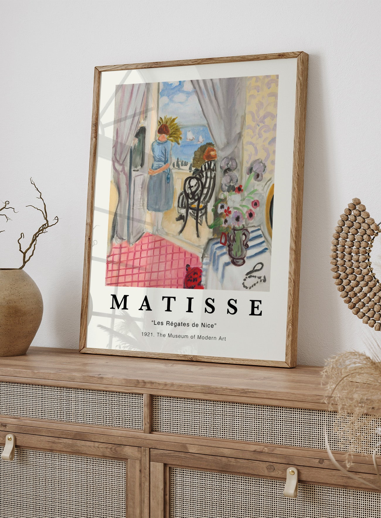 Henri Matisse’s Les Régates de Nice vintage art print invites you to experience the lively charm of a boat race on the waters of Nice. Bursting with bold colors and fluid forms, this vintage art print captures Matisse’s Fauvist mastery.